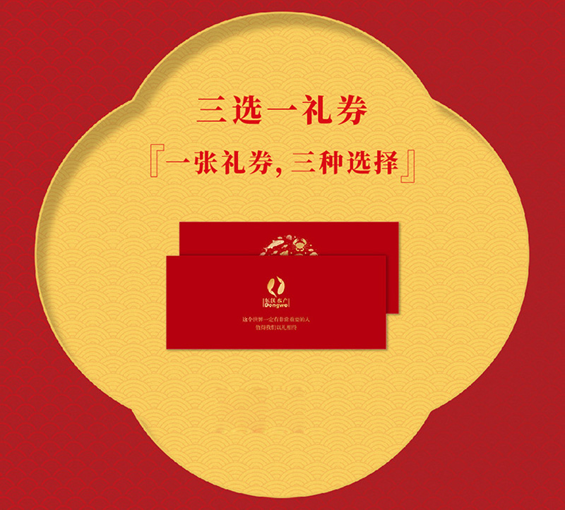 時隔一年,東沃再次推出“三選一禮券”,一張禮券,三種產(chǎn)品任選??蛇x產(chǎn)品涵蓋:國產(chǎn)海鮮、佛跳墻、遼刺參、大閘蟹(時令產(chǎn)品)、海鮮干貨。多樣化的產(chǎn)品選擇,讓送禮更顯價值。