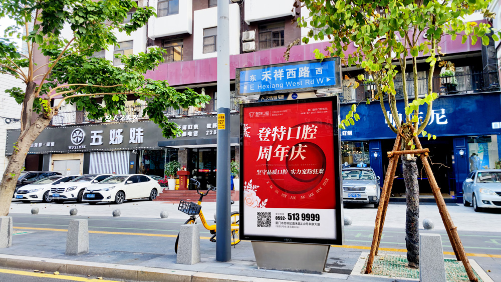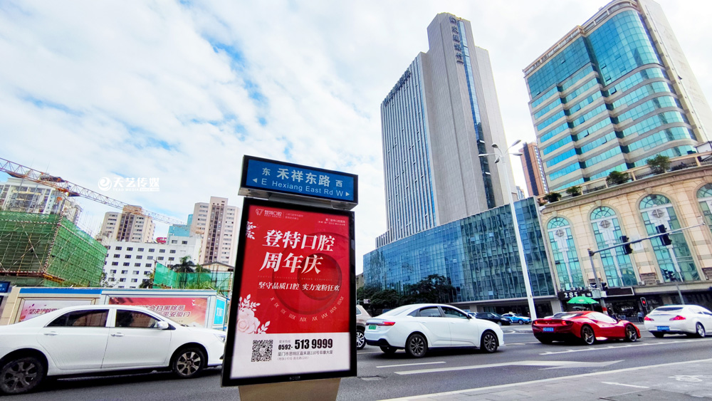同時(shí),廈門登特口腔繼續(xù)與廈門天藝傳媒合作,投放鷺島全城超200座城市路名牌,覆蓋島內(nèi)各大交通主干道(如嘉禾路、禾祥西路、禾祥東路)、核心商圈、商務(wù)區(qū)寫字樓林立區(qū)、人流車流覆蓋密集區(qū)域。