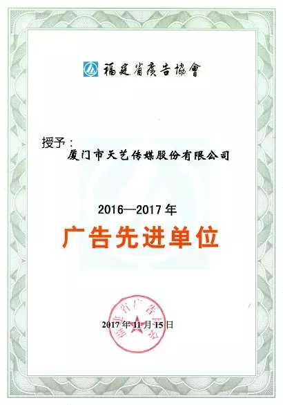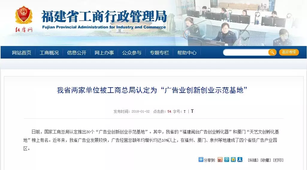 日前,在國家工商行政管理總局辦公廳出臺的《關于進一步推進廣告業(yè)創(chuàng)新創(chuàng)業(yè)有關工作的通知》(辦字【2017】209)中,由廈門市天藝傳媒股份有限公司創(chuàng)辦的“天藝文創(chuàng)孵化基地”被評定為國家級廣告業(yè)創(chuàng)新創(chuàng)業(yè)示范基地,成為廈門市2017年度唯一一家獲評廣告業(yè)創(chuàng)新發(fā)展優(yōu)秀典型企業(yè)的單位。